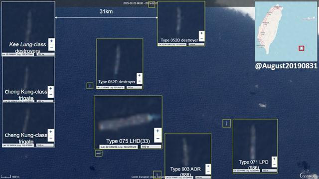 近日,解放军以雷霆之势,在台海与南太两个方向同时亮剑,展现出捍卫国家主权与领土完整的坚定决心,引发国际社会广泛关注。在台海方向,援引环球网2月28日消息,解放军 075型两栖攻击舰领衔的两栖打击群气势汹汹,自台东外海穿越巴士海峡,直抵台湾高雄海域。卫星图像显示,2月25日,该编队包括1艘071型两栖船坞登陆舰、2艘052D型驱逐舰和1艘903型综合补给舰,在台岛以东约250公里处活动,台军1艘基隆级驱逐舰和2艘成功级护卫舰如临大敌,匆忙赶来监视。